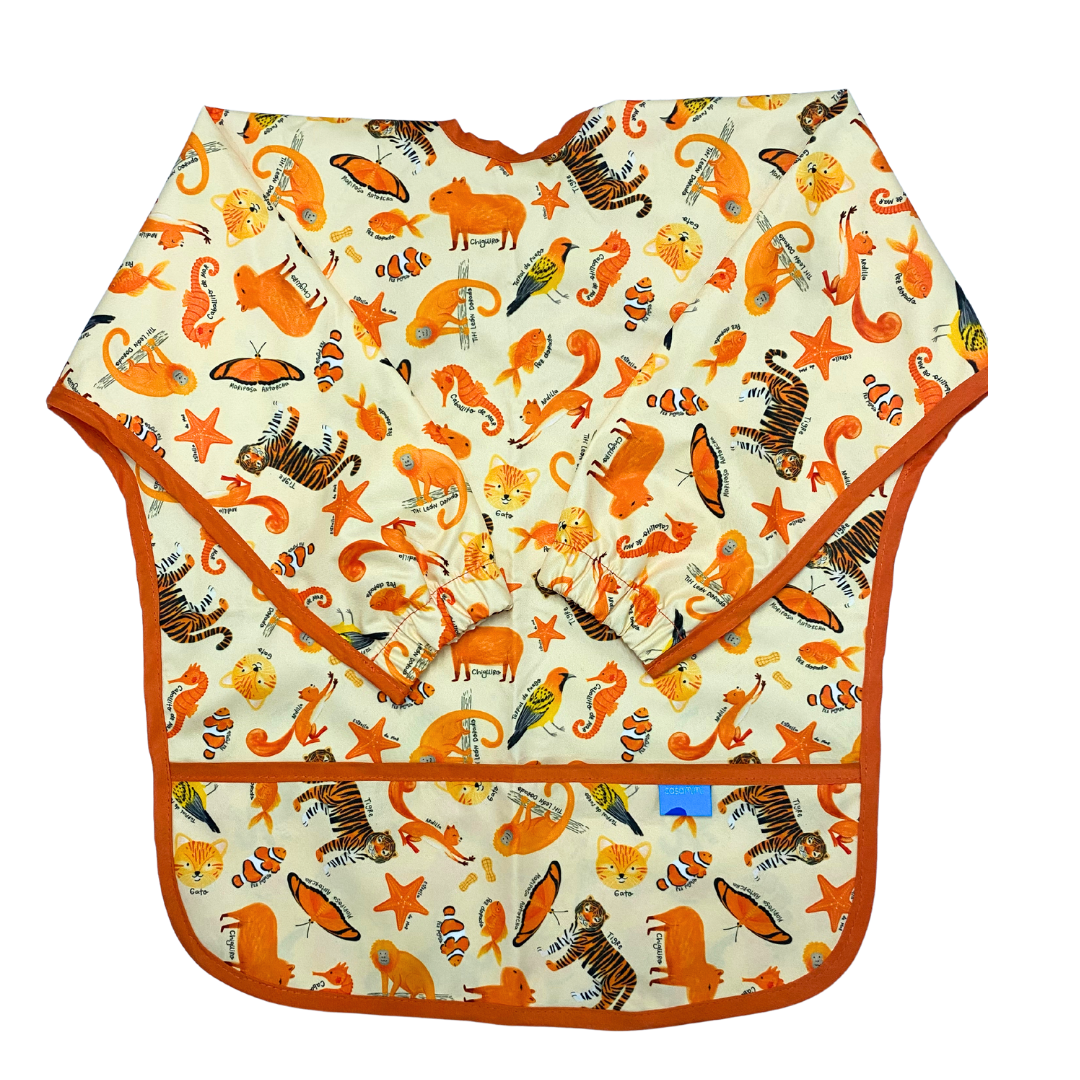 | Babero con mangas en tela impermeable. Diseño ilustrado pensado en fomentar la estimulación de tu bebé a través de los colores. Bolsillo , puños reforzados. Tela fácil de limpiar. Ideales para alimentación, juegos de estimulación y pintura. Disfruta de los pequeños momentos junto a tu bebé sin preocuparte por la limpieza. |