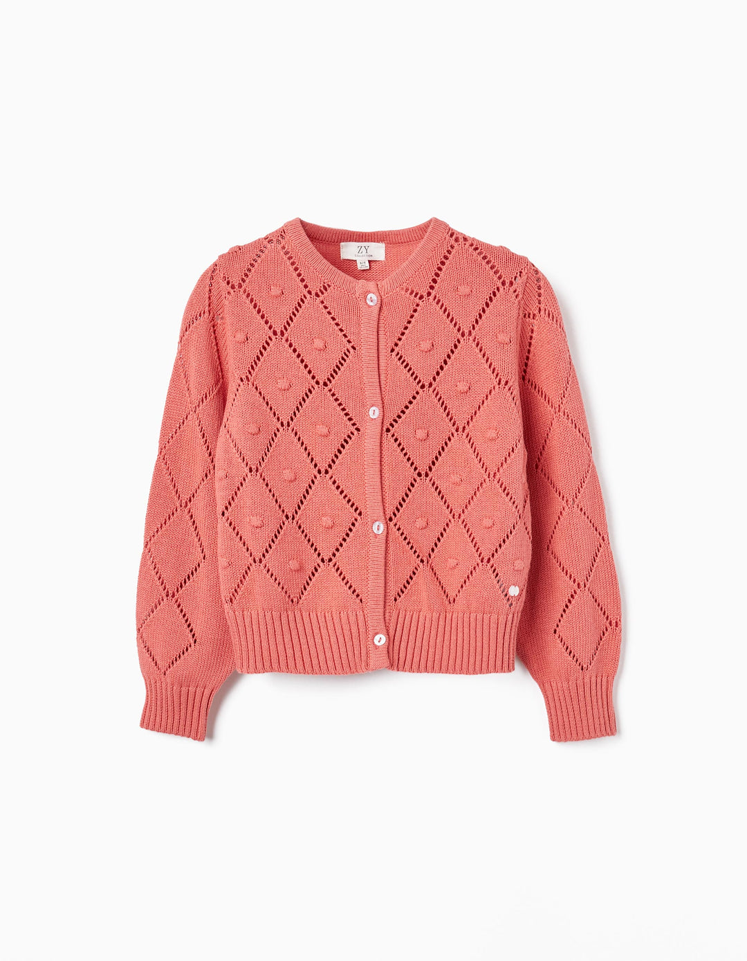 Chaqueta blanco de punto 100% algodón para niña. Efectos de punto en picotado y en relieve. Se abrocha por delante con botones. Extremos acanalados para un mejor ajuste y comodidad. Una chaqueta cómoda con punto suave.