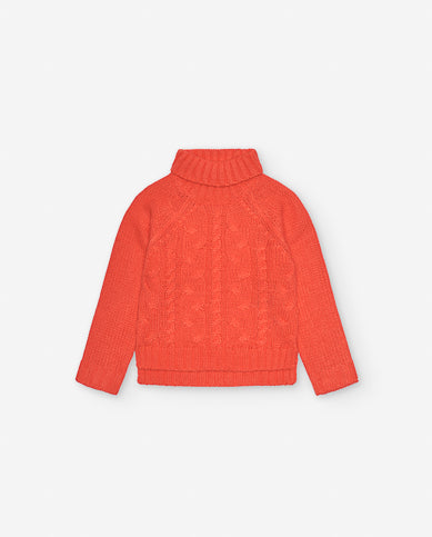 Saco tejido en color naranja. Acanalados en mangas para mejor ajuste. Diseño único, con cuello alto para mayor protección en temperaturas bajas.